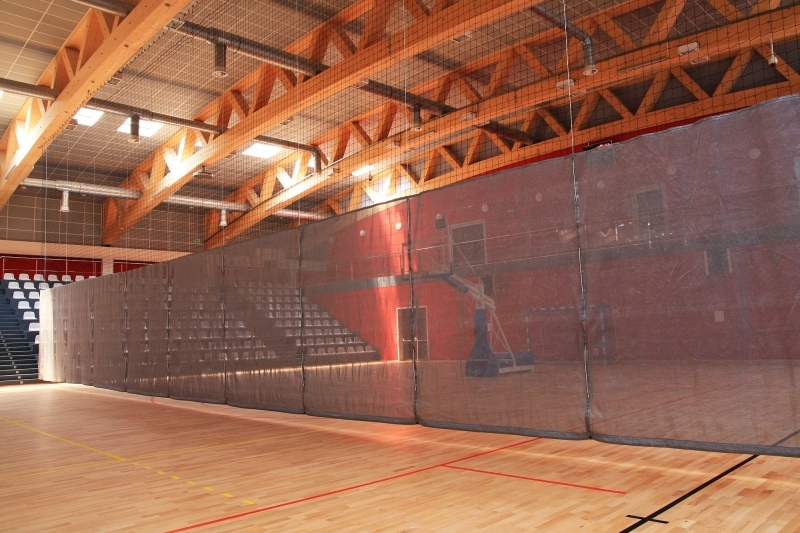 Dělící závěs "tkanina + síťka" do výšky 3,0 m s oky 10 x 10 cm. Materiál neprůhledný nebo polopriehľaný. Barevné provedení na základě požadavku klienta.