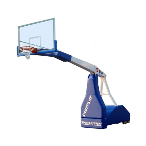 Profesionální basketbalová konstrukce EASYPLAY officially dynamicky vyvážená - spojovací části paže vybavené válečkovým ložiskem, špičkové parametry pružnosti konstrukce. Vylepšený skládací elektromechanický a hydraulický systém (výška koše libovolně nastavitelná). Přední a zadní vozík je spojen do jednoho celku, který tvoří základovou desku konstrukce s ochrannou pěnovou vrstvou tloušťky 15 cm (omyvatelný povrch). Pohyb podstavy (zdvih a klesání) plně automatizované. Rozměry složené konstrukce 480 x 190 x 178 cm, váha jedné konstrukce 1100 kg. Vzdálenost mezi deskou a přední stěnou základové desky konstrukce je 330 cm. Přesun konstrukce je zabezpečen pomocí 4 koleček umístěných v základové konstrukci (2 pevná, 2 otočná). Konstrukci je třeba ukotvit z důvodu bezpečnosti do podlahy.